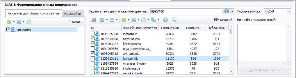 Ее можно добавлять по конкурентам, геоположению, хештегам и по своему списку. Поиск по конкурентам проще и популярнее. Для него нужно отобрать не только прямых конкурентов, но и паблики со схожей тематикой.