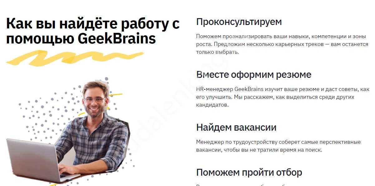 Бесплатное обучение: Geekbrains – одна из немногих школ, где практикуются бесплатные мини-курсы, пройдя которые человек понимает, подходит ли ему профессия, стоит ли покупать полный курс или нет. Помимо этого, регулярно проводятся бесплатные интенсивы и вебинары от преподавателей школы.