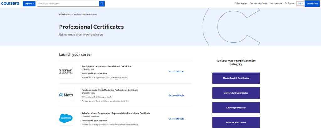 On the other hand, Coursera provides a free auditing option to its users. The users can sign up for free on the website and can watch over 1,000 courses on the platform for no cost. But when you want to avail its other features, such as graded assignments, certificates, and mentorship, you would have to pay the fee charged by Coursera.
