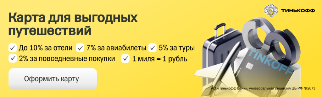 - до 5 % вы сможете получить за покупки на tinkoff.ru/travel;