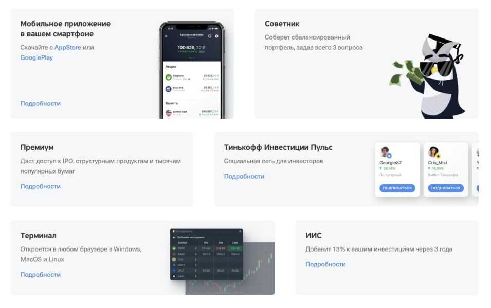 Премиум-сервис предоставляет клиентам персонального менеджера и дает больше возможностей для инвестиций. Здесь можно познакомиться с принципами работы и условиями.