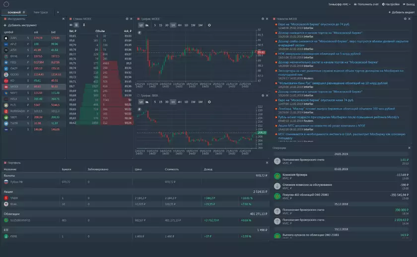 - «Инвестиции для профессионалов». Доступна внутридневная маржинальная торговля. Кредитное плечо рассчитывают исходя из ставки риска. Легкое выставление заявок, stop loss и take profit позволяют контролировать прибыль и убытки. Стакан и свечи помогают отслеживать спрос и предложение, проводить теханализ, предугадывать ценовые движения;