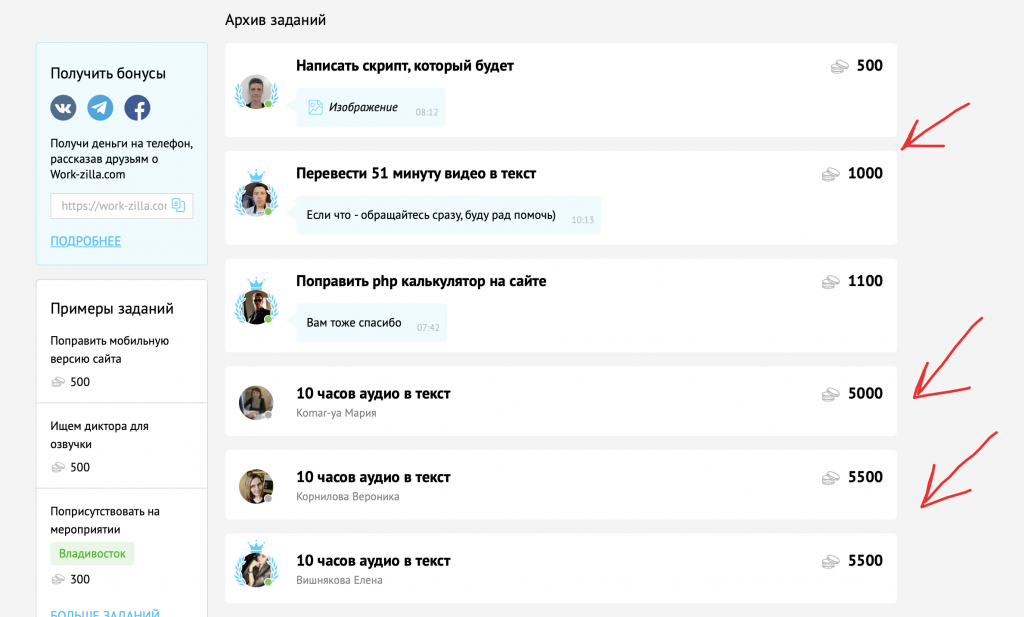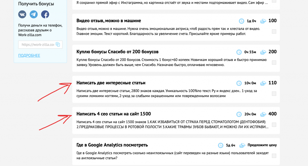 Пример разноплановых заданий для фрилансеров на сайте Воркзилла.