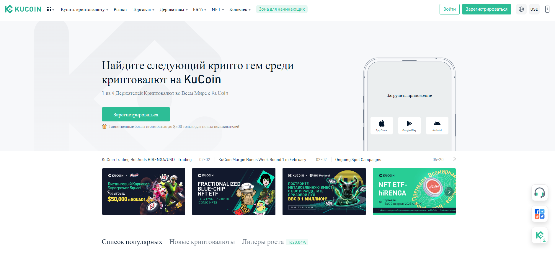 KuCoin отличается лучшим выбором криптовалют, поддерживая более 700 криптоактивов. Широкий выбор и удобная платформа делают ее популярной как среди начинающих, так и среди опытных трейдеров. Среди отличительных особенностей KuCoin — спот-трейдинг, фьючерсная торговля, маржинальная торговля, стакинг и кредитование, которые предоставляют диверсифицированные инвестиционные возможности. Уникальные предложения, такие как бонус KuCoin Share (KCS) и платформа Spotlight Initial Exchange Offering (IEO), еще больше повышают ее привлекательность, позволяя пользователям получать выгоду от роста платформы.