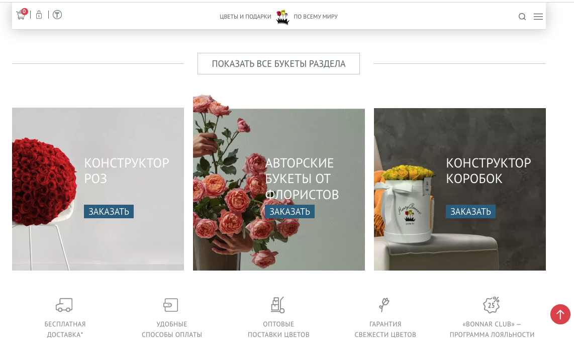 - возможность выбрать нужный товар по виду цветов, событию, типу букета, цене (отображение стоимости в долларах, рублях или тенге);