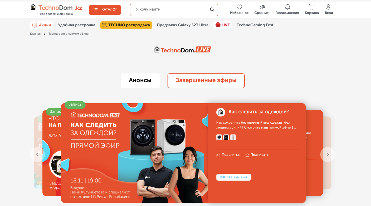 Technodom — один из крупнейших онлайн-ритейлеров техники, электроники и других товаров с широкой сетью пунктов самовывоза. Кроме того, что специалисты Technodom занимаются успешной реализацией огромного ассортимента товаров, они еще ведут прямые эфиры. И довольно полезные. Например: «Как приготовить ужин за 15 минут», «Как ухаживать за одеждой» или «10 упражнений для офисных работников». Последний, кстати, нас заинтересовал