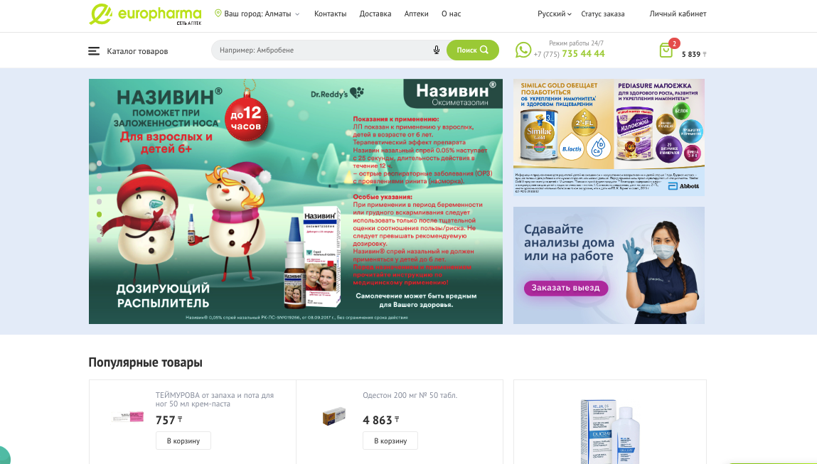 - удобная навигация по разделам и система фильтров — по назначению средств и их доступностью для доставки или самовывоза;
