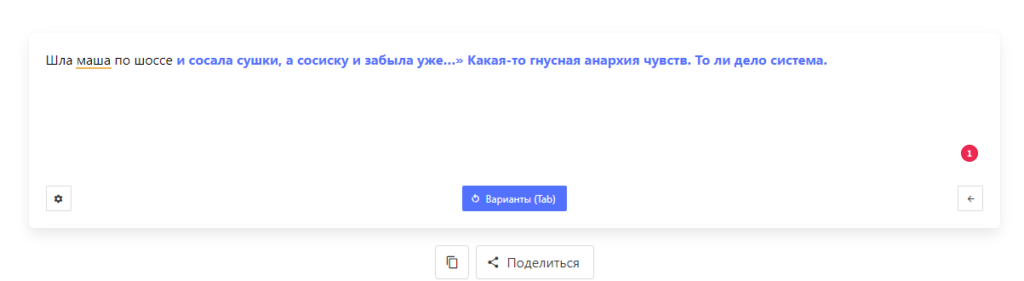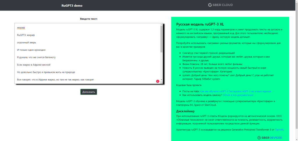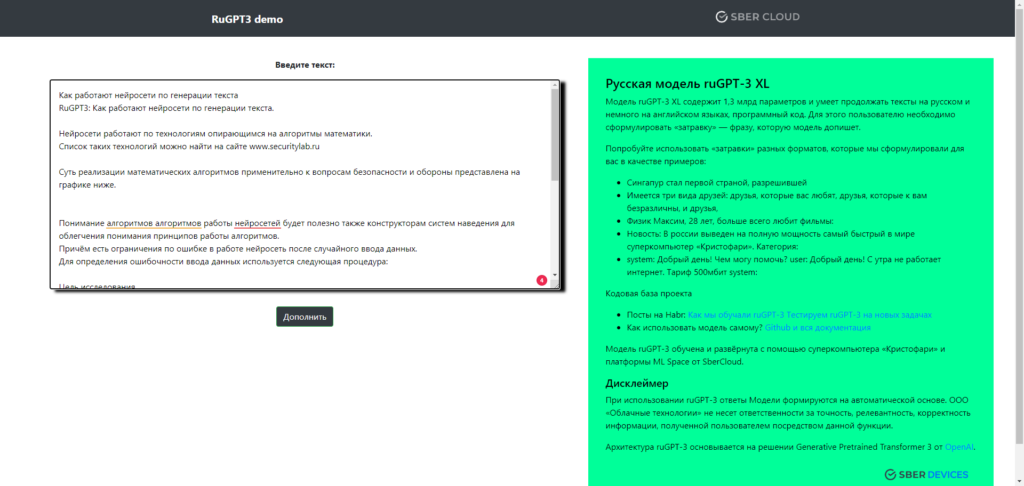 Чтобы получить нормальный и осмысленный текст, нужно ввести пару предложений. Отделаться одним словом не получится — в таком случае нейронка сбера не понимает, что от нее хотят, и генерирует рандомные предложения.