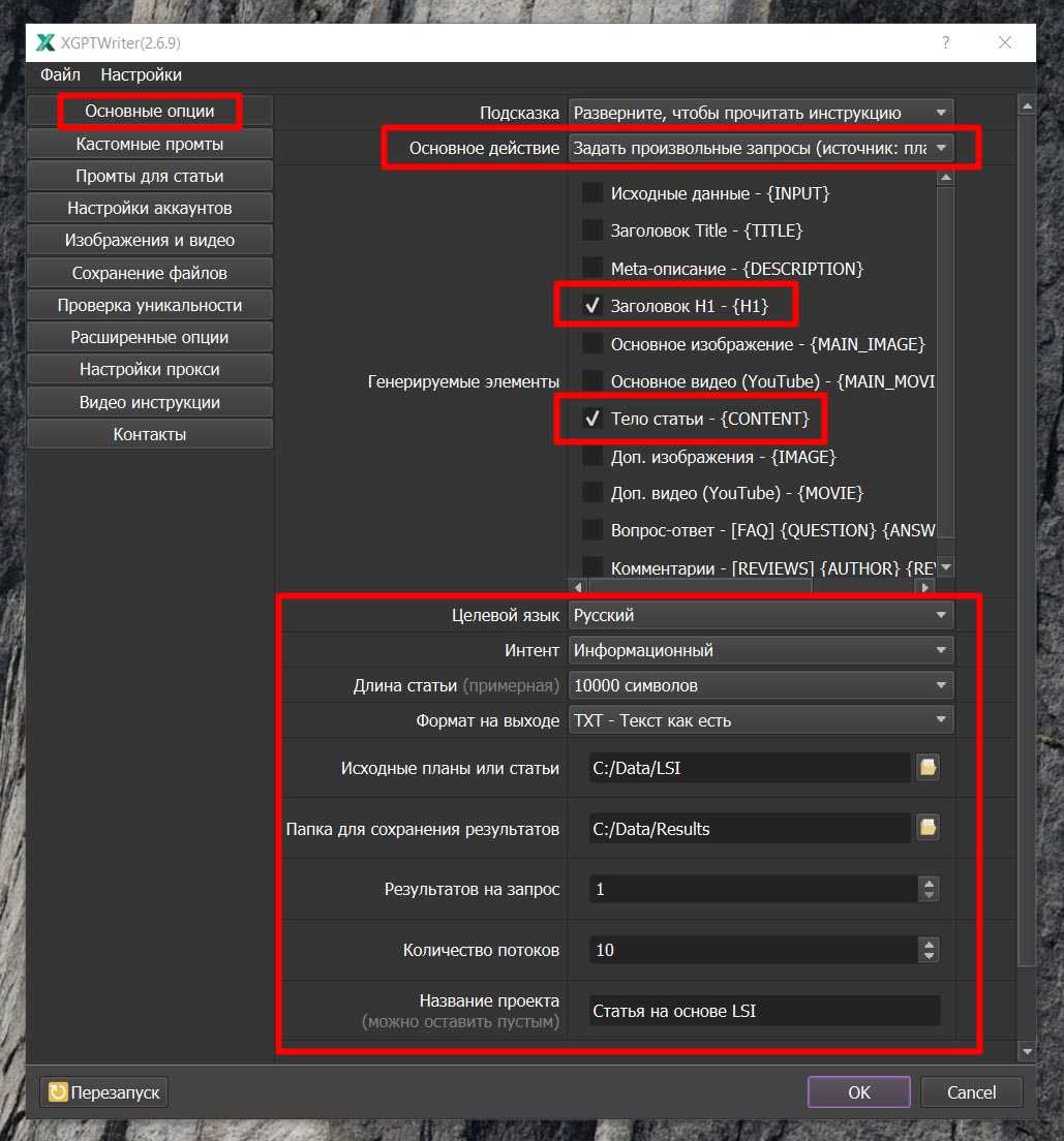 Генерация статей на основе LSI слов полученных с помощью нейросети в программе X-GPTWriter