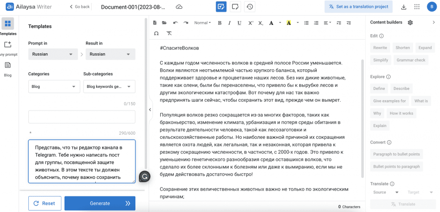 Ailaysa — полноценный фреймворк для создания текстового контента