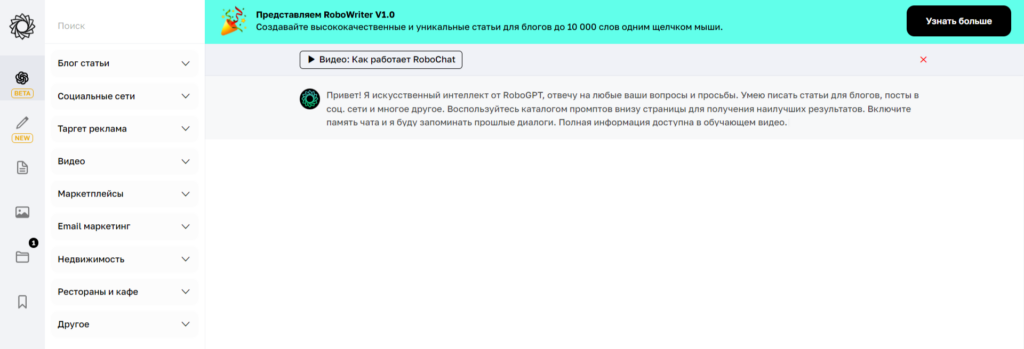 ChatGPT от компании OpenAI — с отрывом самое популярное приложение для генерации текстов. Для создания текста требуется подать боту на вход задание (промпт) с описанием итогового результата и дополнительные инструкции, позволяющие задать стиль, длину, структуру текста, порядок абзацев, оптимизацию под ключевые слова, целевую аудиторию. Если текст не понравился, попросите нейросеть сгенерировать новый ответ, и вы получите новый уникальный текст на то же задание. Нейросеть отлично понимает задания на всех языках и генерирует тексты в том числе на русском языке совершенно бесплатно.