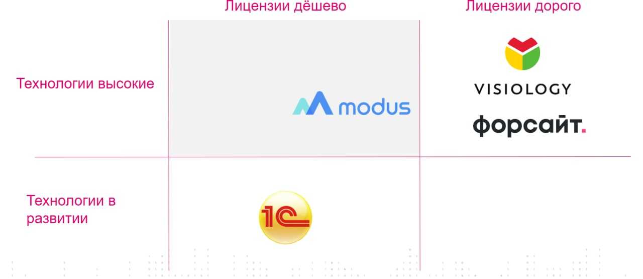 Программа Modus BI, как и Форсайт — считается в едином реестре российского ПО — поэтому может стать отличным вариантом для перехода и импортозамещения. Переход на программы осуществляется с помощью заранее подготовленной и выгруженной информации из других источников. Работы осуществляют программисты.