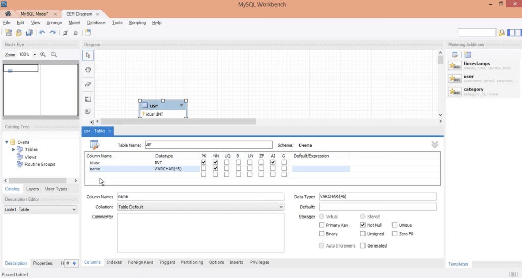 - доступны модуль для визуального проектирования и ER-диаграммы, позволяющие создавать таблицы и связывать их между собой;