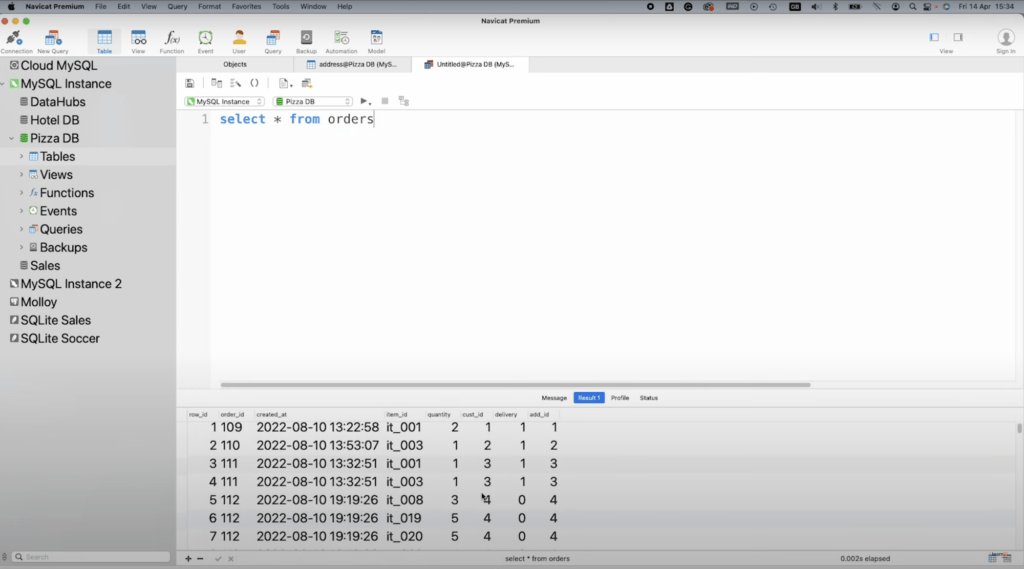Фрагмент работы с базой данных внутри Navicat. Источник