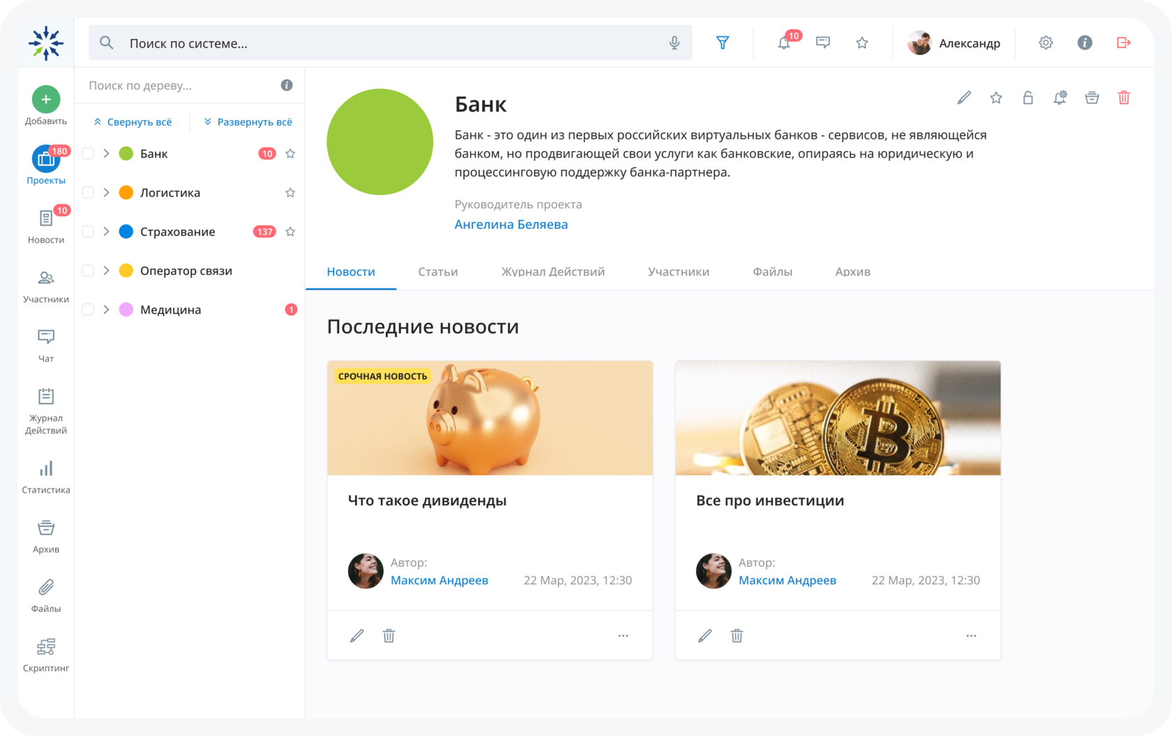 - Ас про. Agile — сервис для управления проектами. Предлагает разнообразные инструменты, например встроенный мессенджер, а также интеграцию БЗ для сотрудников компании.