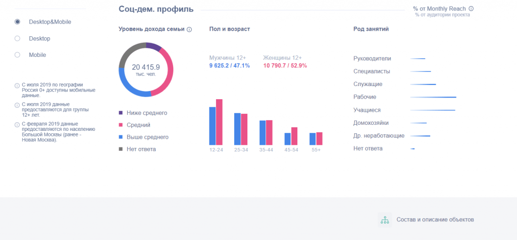 Социальные и демографические показатели аудитории