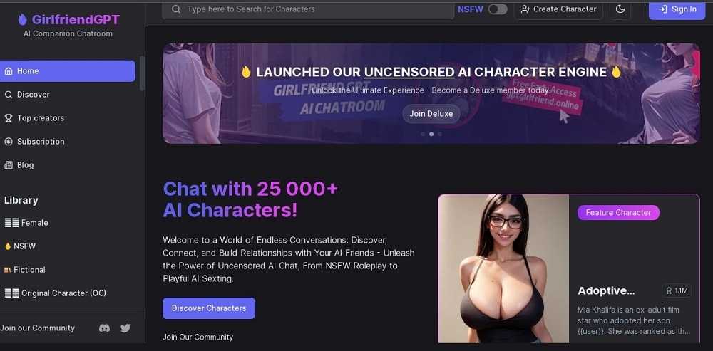 GirlfriendGPT — еще один интересный чат-бот NSFW, который позволяет вам общаться с более чем 25 000 AI-персонажами о чем угодно. К сожалению, если вы выберете бесплатную версию, существуют некоторые ограничения. Однако с премиум-версией вы можете разблокировать возможности чат-бота NSFW и общаться с персонажами о чем угодно.