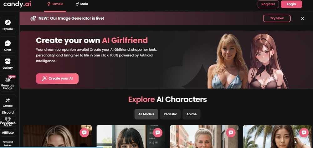 Candy AI — еще одна впечатляющая платформа, на которой вы можете создавать своих персонажей с искусственным интеллектом или выбирать персонажей в режиме реального времени. Вы можете выбрать, хотите ли вы персонажей мужского или женского пола, в зависимости от вашей гендерной идентичности.