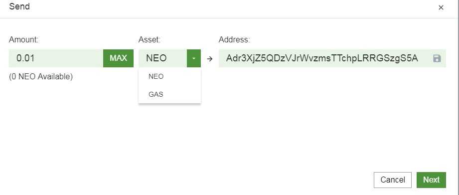 Выберите NEO из раскрывающегося списка. Введите адрес своего общедоступного кошелька NEON в качестве адреса вывода и суммы, которую вы хотите снять.