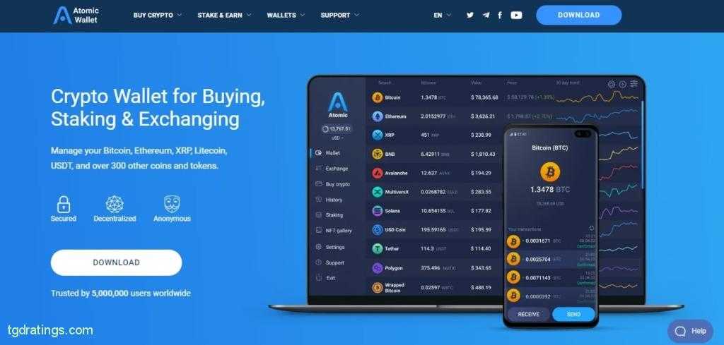 Atomic Wallet provides advanced security features, including password protection, pass-phrase backup, and two-factor authentication.