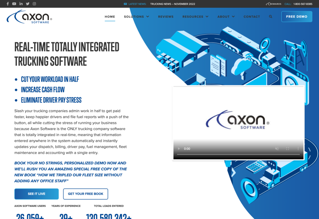 Клиенты, перевозчики грузовых автомобилей/LTL, нефтепромысловые, автомобильные, и heavy-load перевозчики, могут получить выгоду от программного обеспечения Axon Trucking Software. С 1982 года Axon обеспечивает бесперебойную работу бухгалтерского учета, диспетчерского центра, технического обслуживания, управления транспортировкой, технического обслуживания автопарка, программного обеспечения для продажи билетов и отчетности IFTA. Даже процесс интеграции проходит гладко. Оставайтесь на связи со всеми своими сотрудниками через мобильное приложение.