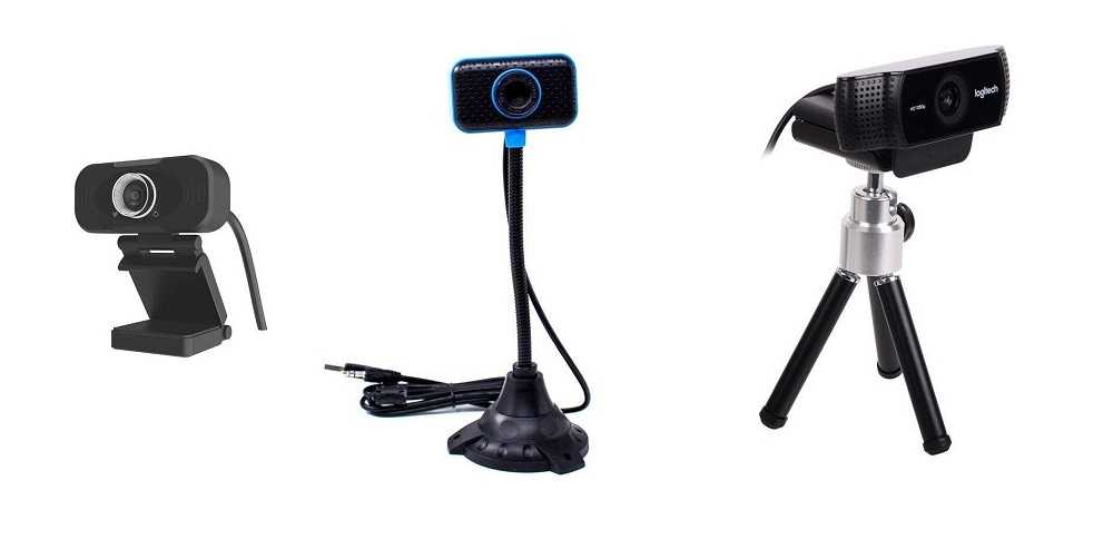 Примеры веб-камер с разными видами фиксации. Крепление «ножка» (посередине) и «подставка-трансформер» (справа) позволяют выбрать удобный ракурс, так как камеру можно расположить в любом месте, насколько позволяет длина кабеля
