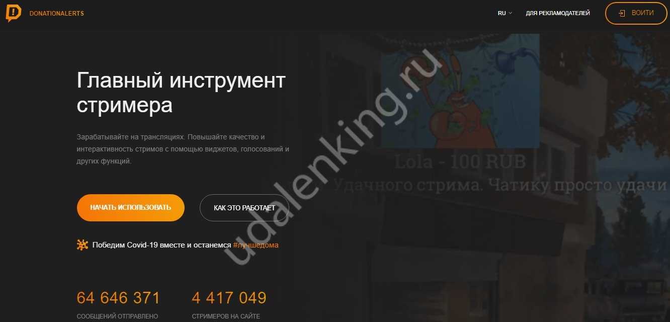 Сервис для стримеров с поддержкой различных стрим-платформ: Twitch, YouTube, Mixer, ВКонтакте. Можно настроить страницу для сбора донатов по своему вкусу. Доступны разные виджеты для стримов: оповещения о донатах, отслеживание подписчиков, размещение медиа, указание цели сбора, отображение последних донатов и списка самых щедрых пользователей. Также можно просматривать аналитику по всем подключенным платформам.