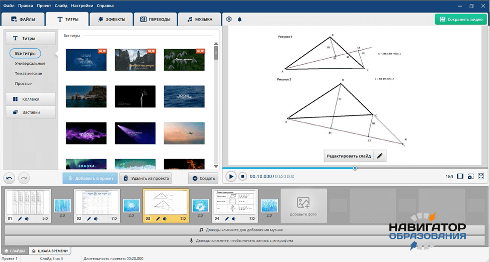Позволит сделать красивые видеопрезентации на английском с эффектами. Слайды можно составлять из различных слоев: фото, видео, текст, фигуры, стикеры и т.д. Вы сможете размещать объекты в любом месте, накладывать друг на друга, менять размер. Дополнить работу можно англоязычной озвучкой и аудиозаписями с ПК.