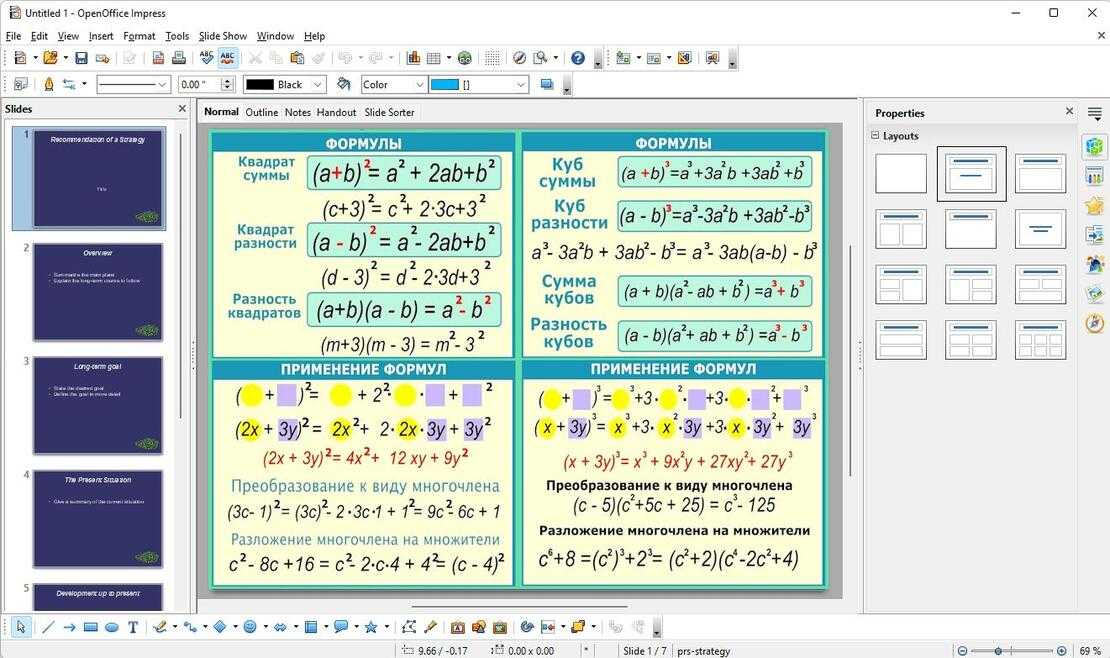 Программа для подготовки презентаций во многом Impress напоминает PowerPoint, но инструментов меньше. Набор опций где-то на уровне продуктов 2007 года от Microsoft.
