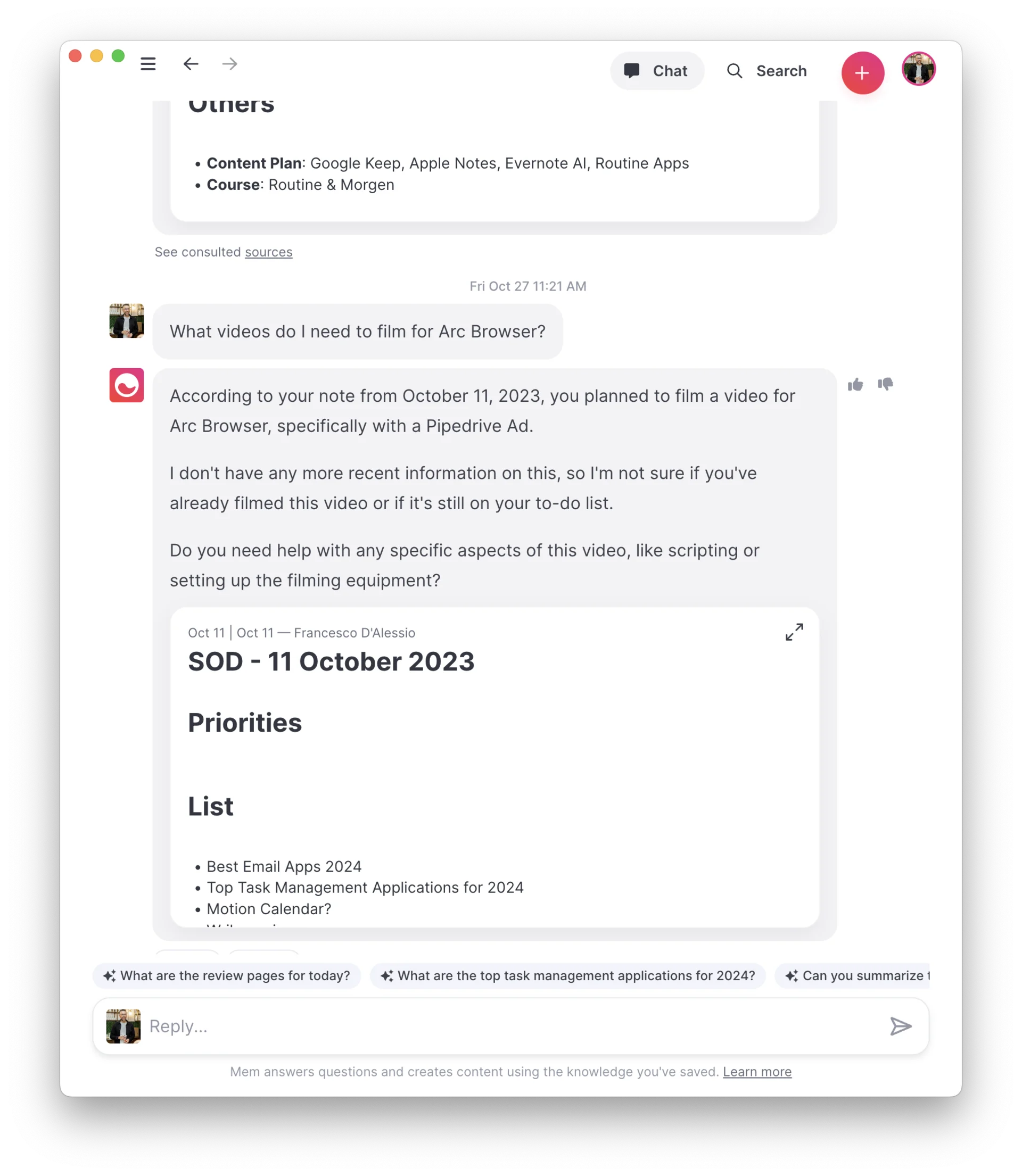 Mem can be used very differently from Evernote. Mem used to be very similar to Evernote, however, it’s since travelled down the expanding AI route, adding more and more artificial intelligence to its application making a faster experience for its users. Of course, Evernote is also introducing AI into its space, but Mem is more well-established in this area right now.