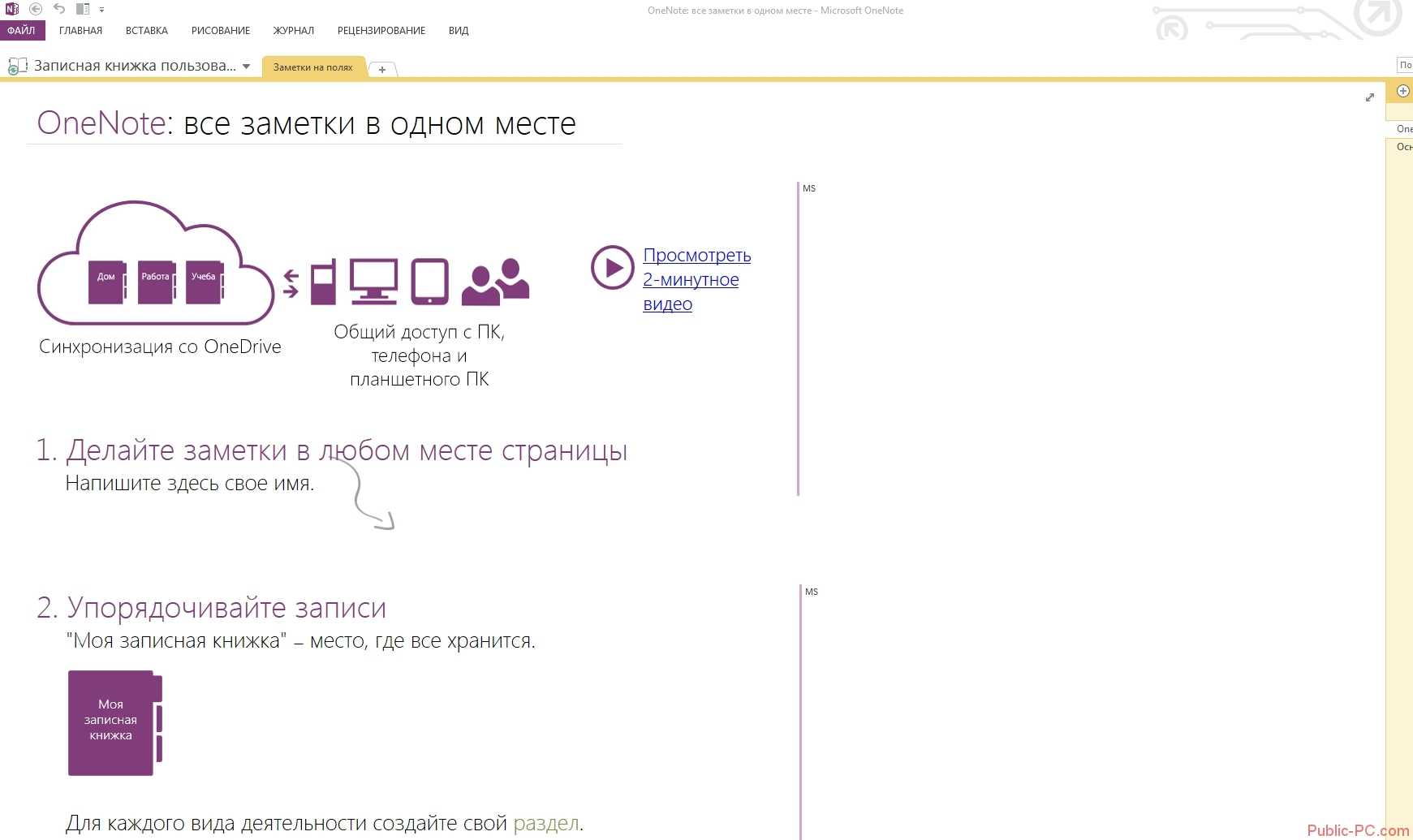 Подход OneNote к заметкам несколько отличается от подхода Evernote. В отличие от простого документа для записей, здесь вы начинаете с чистого холста. Вы можете кликнуть и сделать запись в любом месте, можете создавать неструктурированные заметки, карты памяти, и другие вещи которые легко делать на бумаги, но не всегда удобно на цифровых носителях.