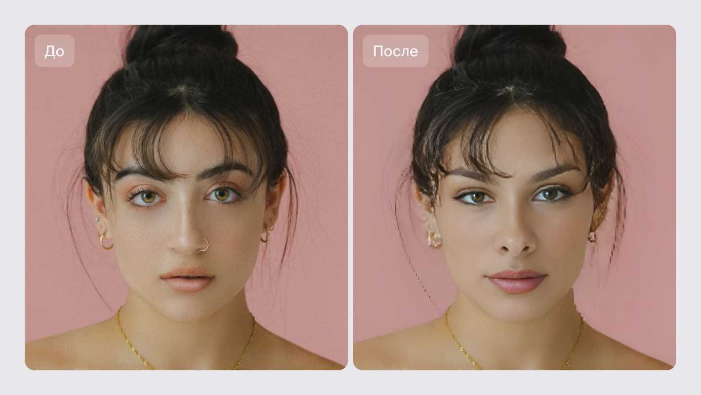 Ещё больше увеличенное фото и небольшой мейкап. Все автоматически без дополнительных настроек
