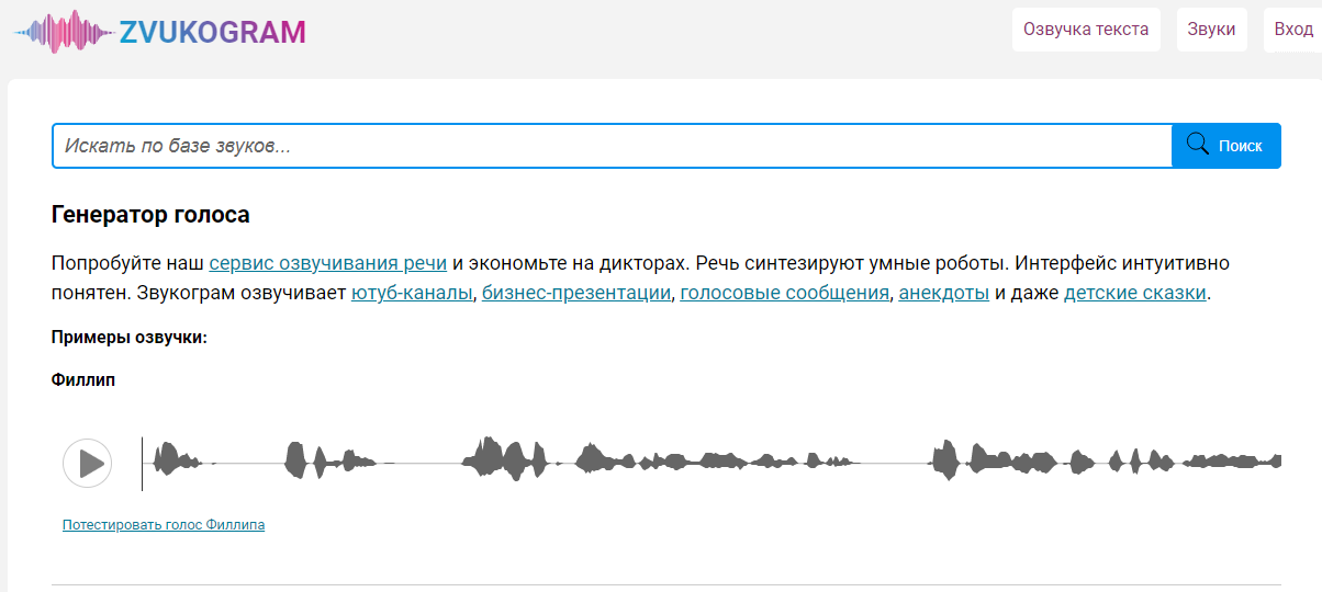 Сервис Zvukogram позволяет сделать озвучку текста нейросетью, которая не будет практически ничем отличаться от озвучки человеком.