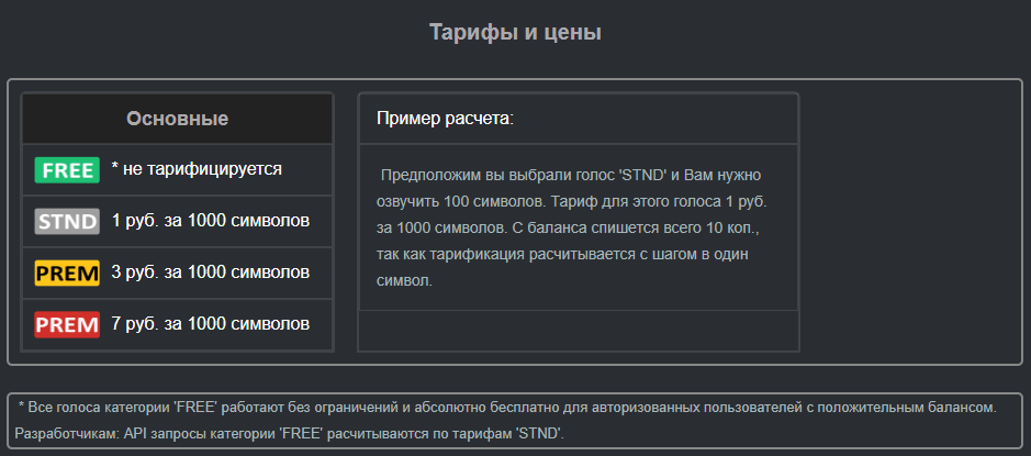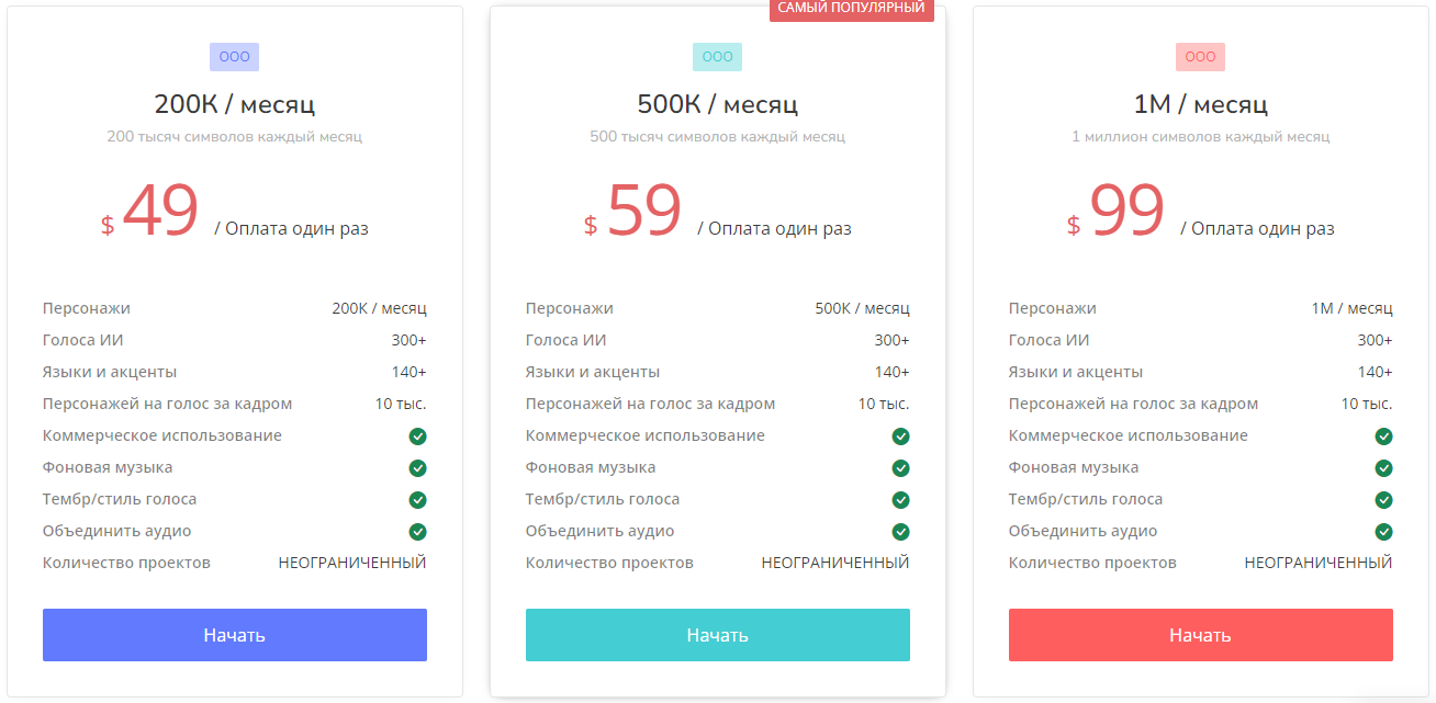 При регистрации вы получаете возможность создать запись на 2000 символов, есть возможность оплатить как ежемесячную подписку в размере $16, так и единоразовую, которая позволяет делать озвучки от 200 тысяч до 1 миллиона знаков ежемесячно.