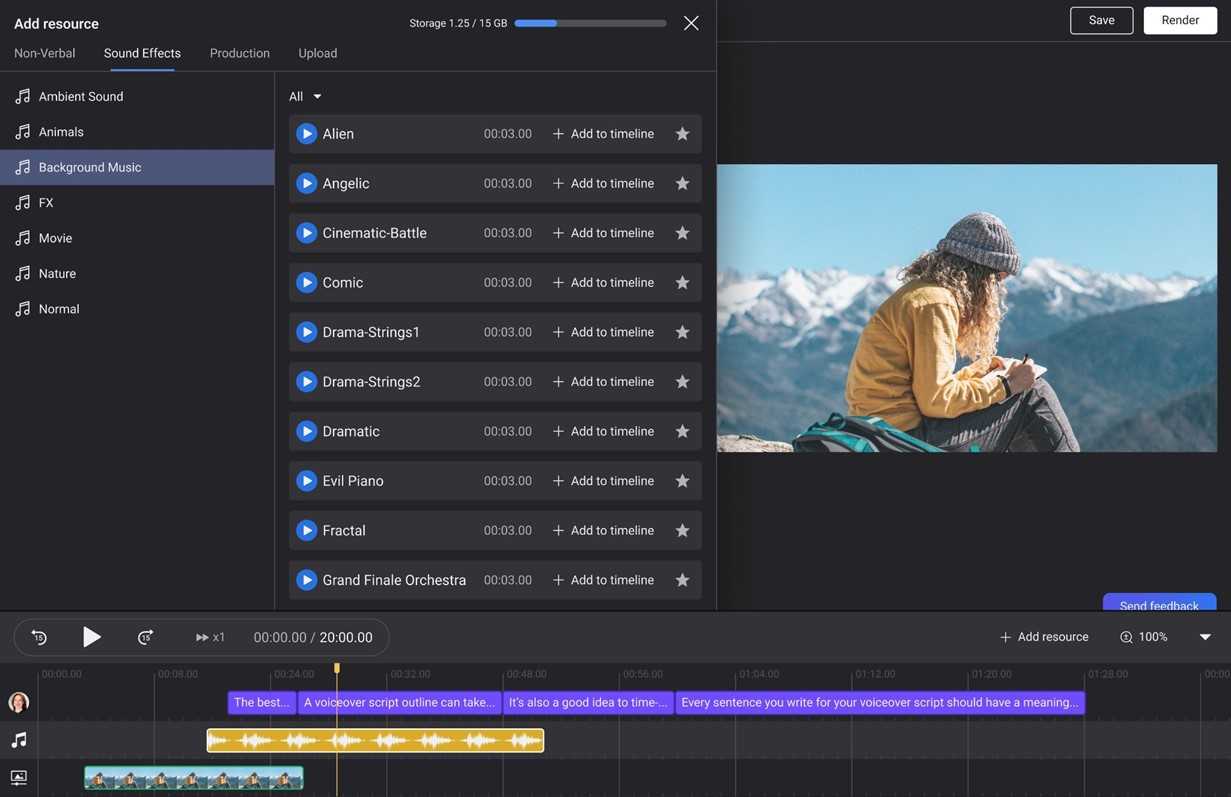 «Script to Video» использует технологию искусственного интеллекта для автоматического создания видео из ваших сценариев, и делает это всего за несколько минут. Существует более 3 миллионов высококачественных стоковых видеороликов и изображений, которые вы можете выбрать в соответствии с вашим сценарием. Также вы получаете до 15 000 музыкальных треков.