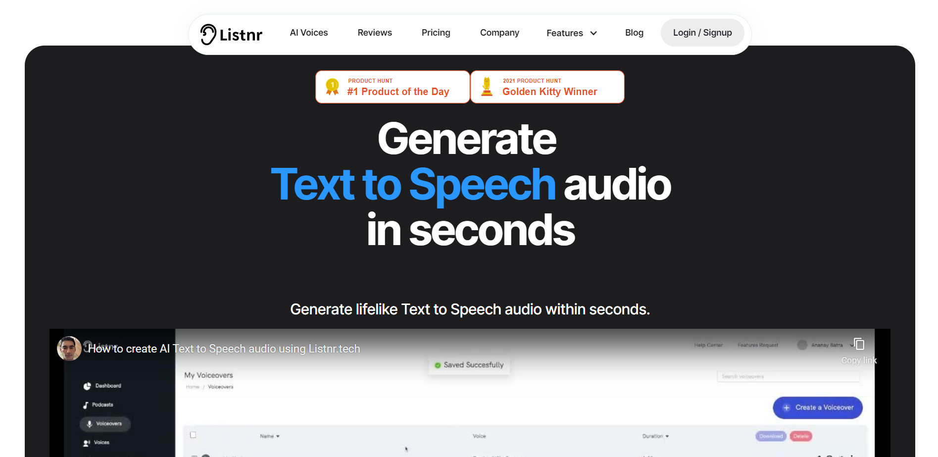 Listnr — это платформа для преобразования текста в речь, в которой используется передовая технология синтеза голоса, поддерживаемая алгоритмами искусственного интеллекта (ИИ) и глубокого обучения, для воспроизведения наиболее человечных звуков из вашего текста.