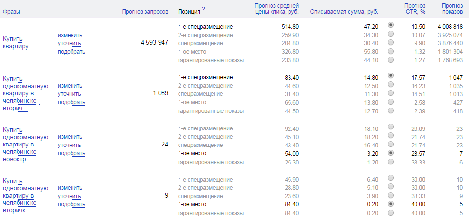 Т.е. если мы хотим продавать квартиры в Челябинске сначала нам стоит взять запросы: «Купить квартиру в Челябинске», «Купить однокомнатную квартиру в Челябинске».