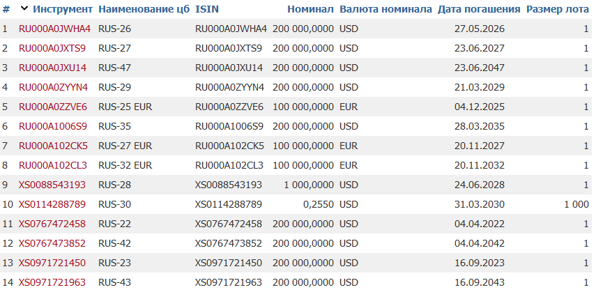 Однако ситуация меняется, если мы имеем дело с российскими корпоративными еврооблигациями, номинированными в валюте. Их номинал в большинстве случаев составляет 1 000 долларов, которые также являются минимальной ценой покупки. Что в десятки раз дороже рублевых вариантов, однако некоторое время назад размер лота этих бумаг был 100 или 200: