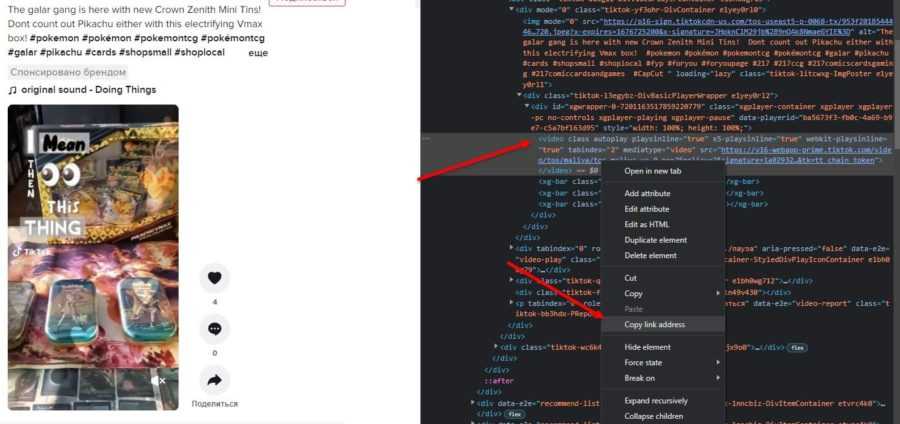 Раньше видеоролики из Tik Tok не выгружались напрямую – блогерам и контент-менеджерам то и дело приходилось вызывать панель разработчика (клавиша F12), искать части кода, связанные с тегом video, а после – копировать ссылки (Copy Link Address) и переносить собранную информацию на соседние вкладки для просмотра и дальнейшего взаимодействия.