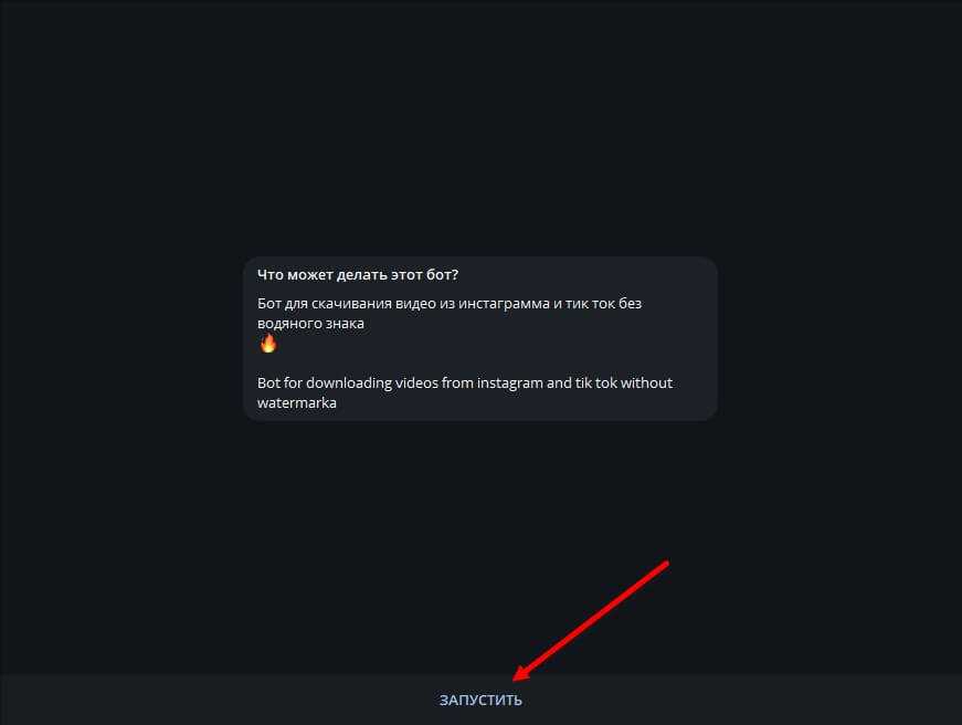 Не различается и порядок действий: сначала бота необходимо «Запустить», а уже после – в появившееся текстовое поле – вставить ссылку на видеоролик.