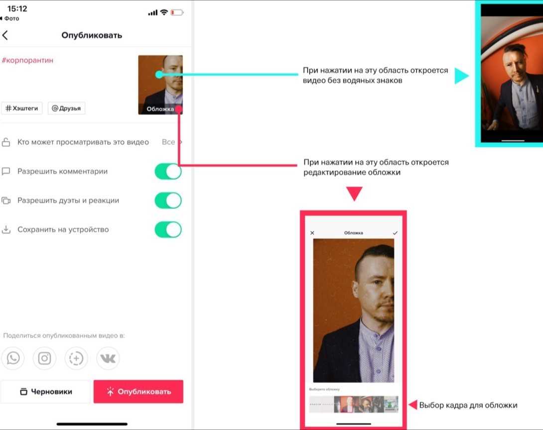 Как загрузить видео без логотипа в ТикТок на планшет или смартфон