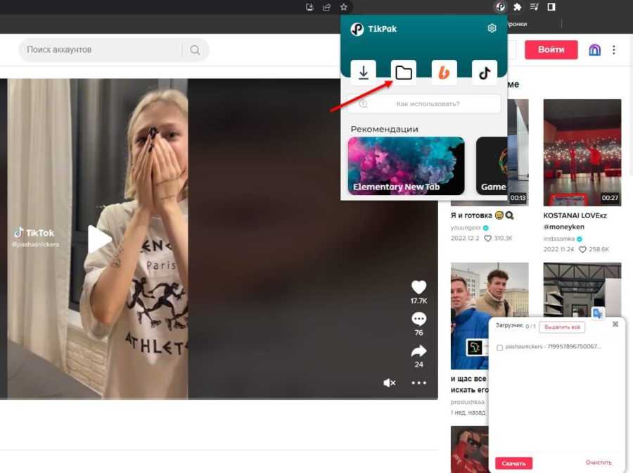 После добавления расширения в браузер, желательно просмотреть все рекомендации от разработчиков, часто скрывающиеся за кнопкой «Как использовать». Например, для взаимодействия с TikPak в Google Chrome необходимо сначала нажать на иконку плагина справа сверху, а после – в контекстном меню – нажать на иконку стрелочки, направленной вниз.