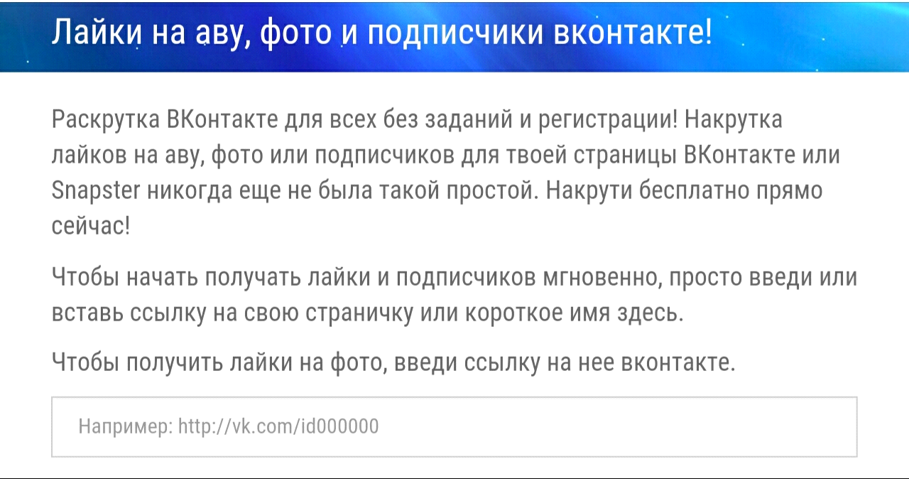 Здесь не требуется ни регистрация, ни скачивание приложений. Сайт предлагает мгновенную накрутку сотен лайков задаром.