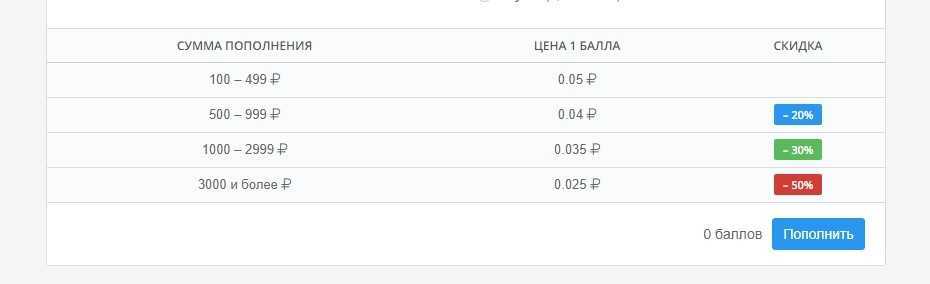 | Сайты и сервис площадки | Цена за одно выполнение (баллы, руб.) |