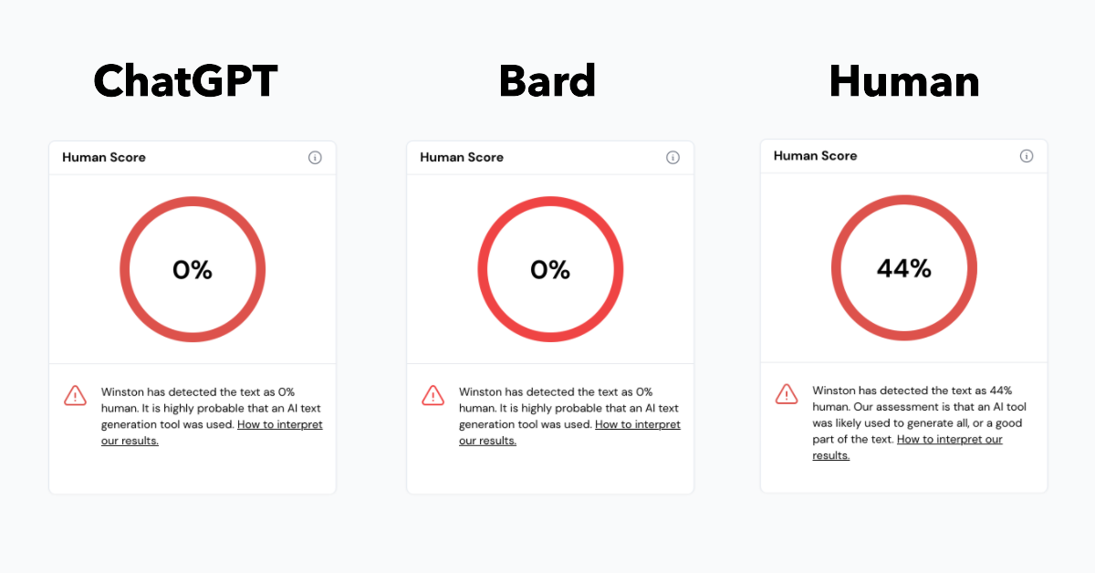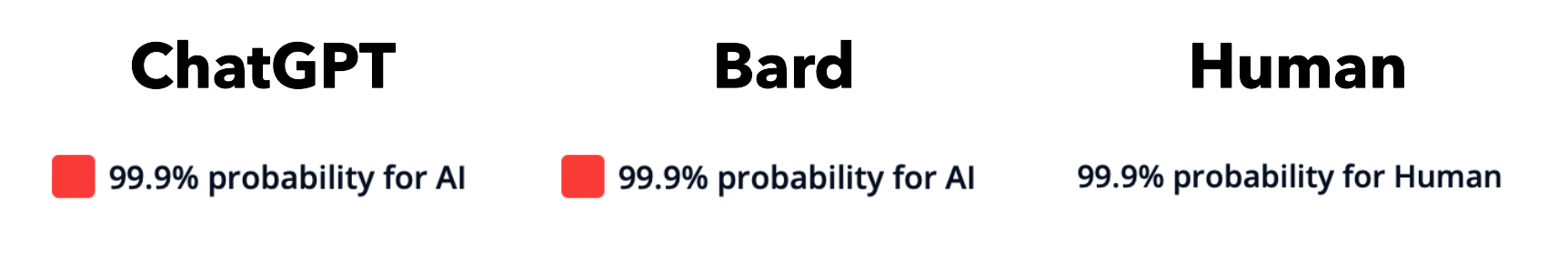 We’re looking for 0% for ChatGPT and Bard, and 100% for Human.