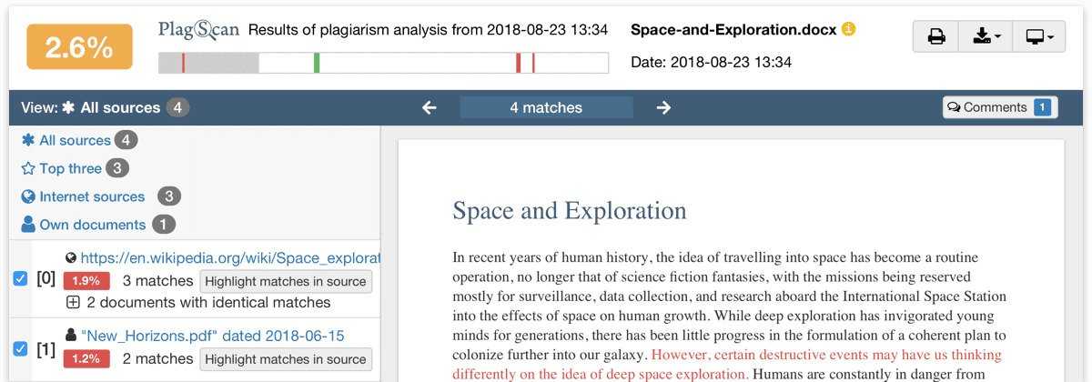 - Подробные отчеты, освещающие потенциальные проблемы плагиата с предложениями по улучшению