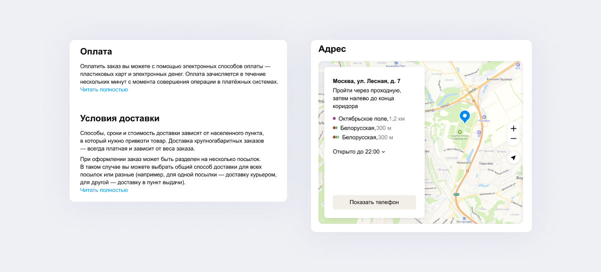 С Расширенным набором услуг можно добавить в профиль больше информации о компании — указать адрес на карте, режим работы и условия доставки