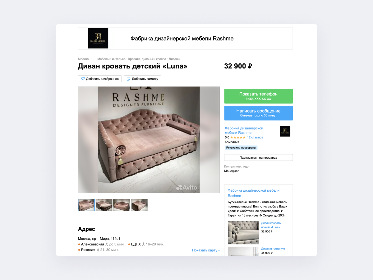 Расширенный набор услуг позволяет разместить в блоке рекомендаций только собственные объявления — они отображаются под карточкой