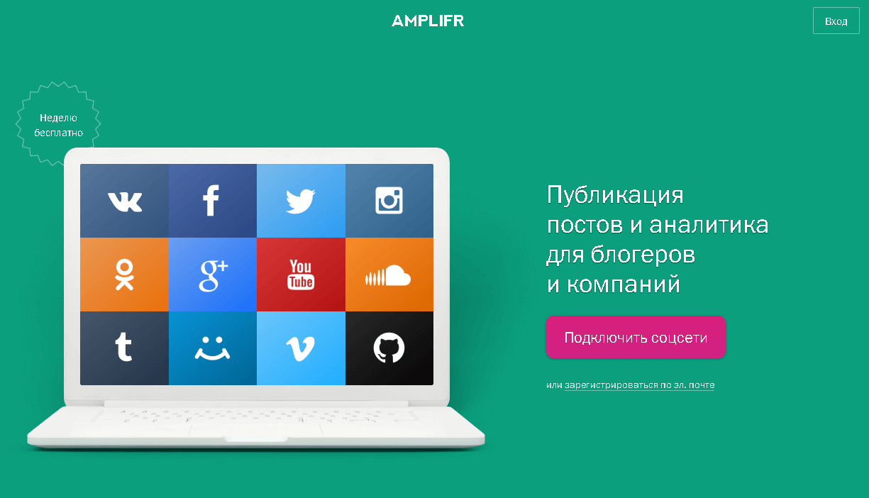 Сервис Amplifr поддерживает большинство популярных соц. сетей (в том числе, «ВКонтакте» и «Одноклассники»), а также видеохостинги YouTube и Vimeo, музыкальный сервис SoundCloud и ряд других популярных в настоящий момент социальных сервисов.