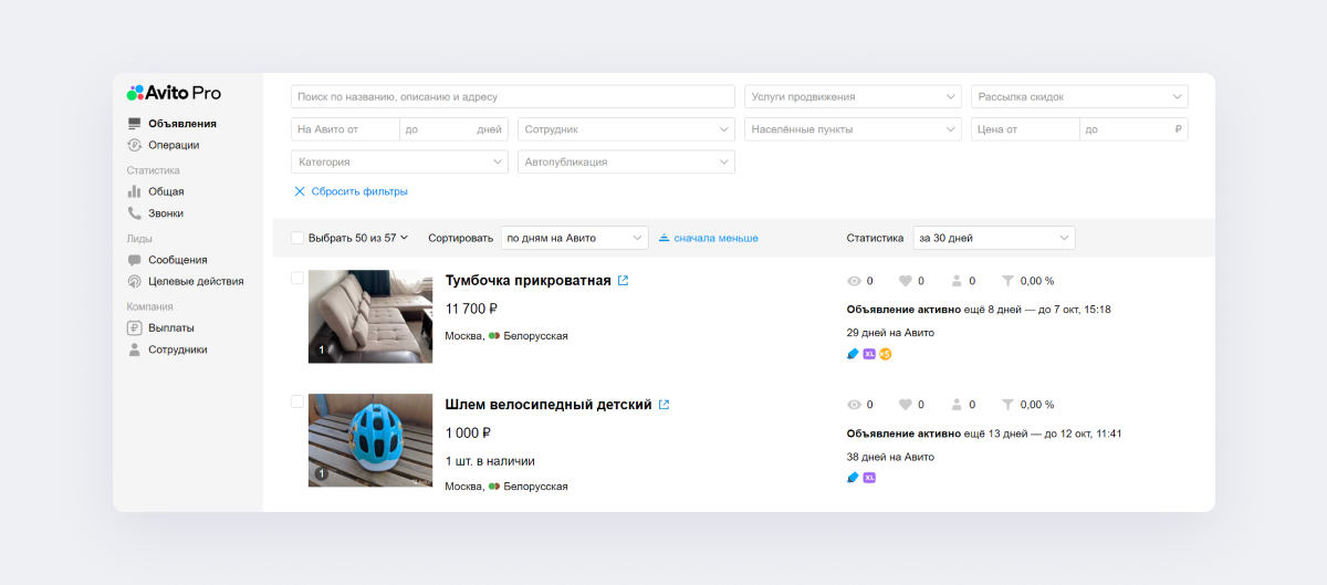 В кабинете Авито Pro можно посмотреть расширенную статистику объявления